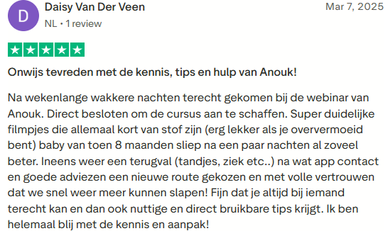 Nee, absoluut niet. Ik ben orthopedagoog, dus kijk naar de gehele ontwikkeling van een kind. Dat betekent dat het verbeteren van slaap niet ten koste van de hechting gaat. Bij mijn slaaphulp krijg je altijd 3 opties waar je zelf uit mag kiezen. Jij kent je kind namelijk het beste, en ik vind het heel belangrijk dat jij achter de aanpak staat.